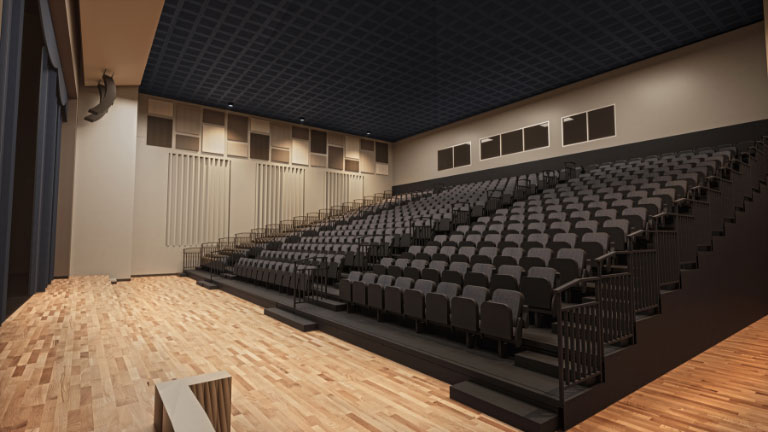 The 500-seat Performing Arts Center is more than meets the eye. It will be, first and foremost, a state-of-the-art high school theater, concert hall, and art gallery.