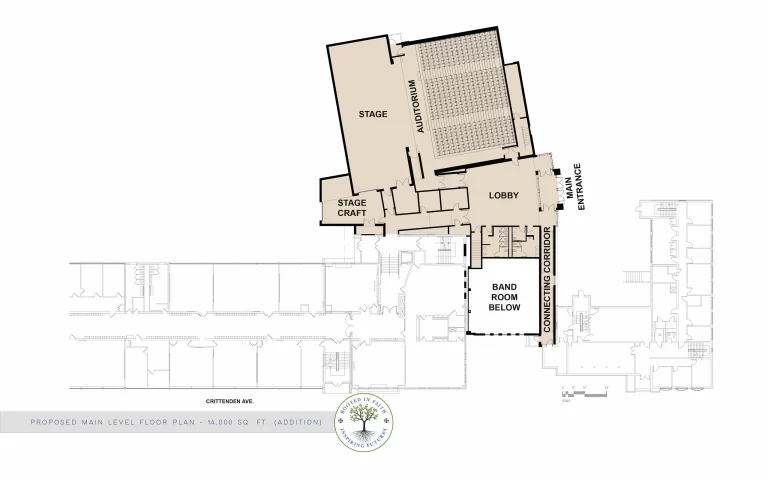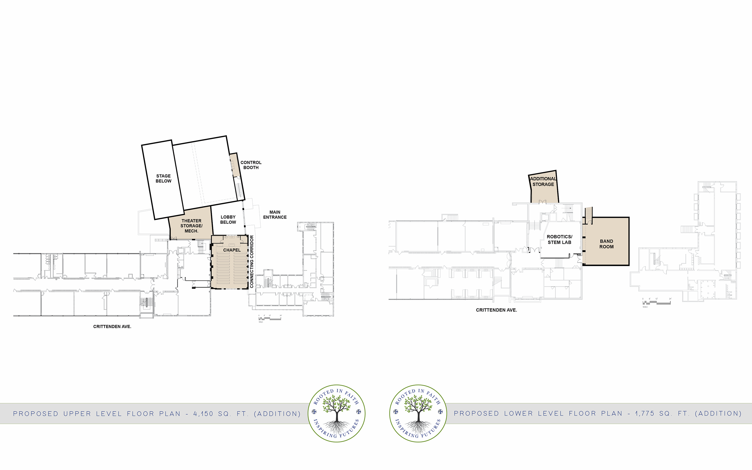 The chapel will be located in the heart of the school directly adjacent to the new Performing Arts Center.